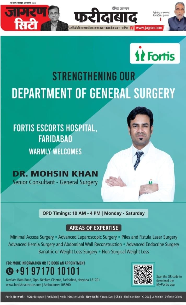 Dr. Mohsin Khan is a distinguished senior consultant in the Department of General Surgery at Fortis Escorts